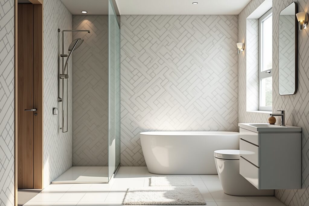 Mutige geometrische Muster können deinem Badezimmer eine individuelle und dynamische Note verleihen. Ob dreieckig, sechseckig oder mit komplexen Linien – Klebefliesen mit solchen Designs werden zum echten Hingucker.